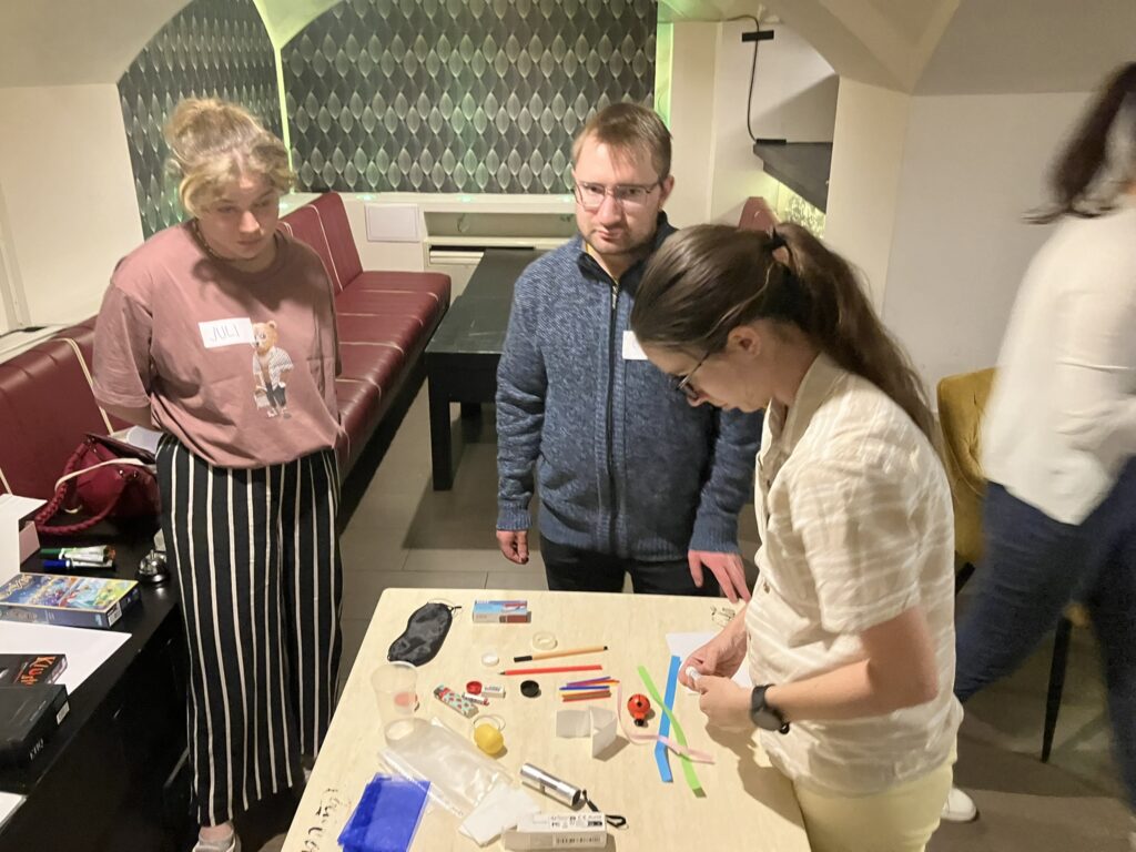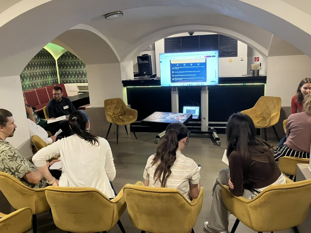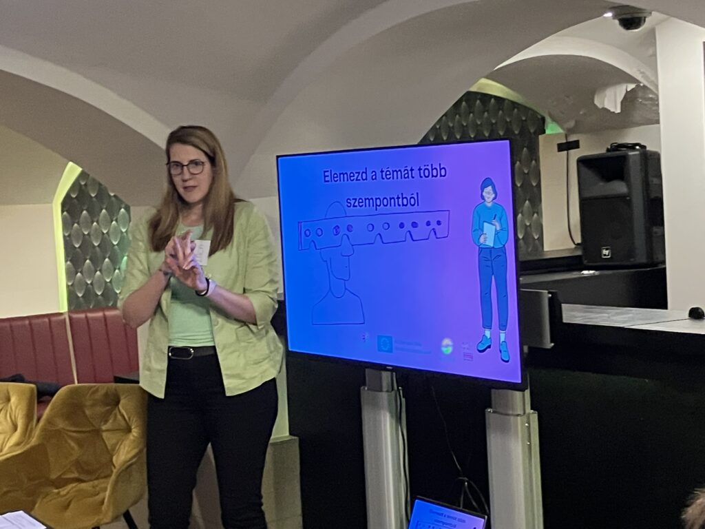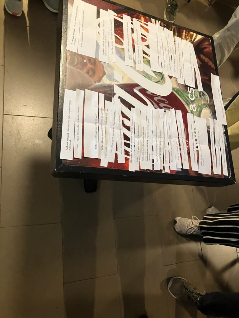 A ráhangolódást a Dixit-kártyák segítették, majd a fókusz a kérdezéstechnika tudatos használatára került: a résztvevők azt gyakorolták, hogyan lehet olyan kérdéseket feltenni, amelyek valóban előreviszik a beszélgetést. Ezt követően a gyors reagálás került középpontba – a cél az volt, hogy a résztvevők váratlan helyzetekben is képesek legyenek strukturáltan és érdemben megszólalni.